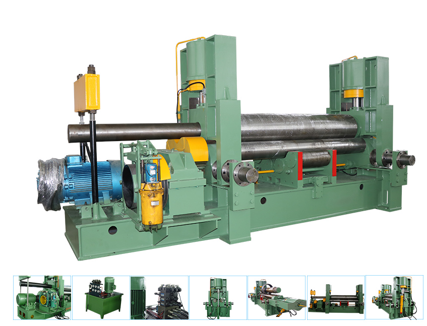 W11SNC萬能式三輥卷板機是一種雙夾板彎板機。 上輥為液壓驅動。 上輥可水平和垂直調節(jié),兩個下輥是固定的。 所有合金鋼輥均經(jīng)過感應淬火和熱處理。 經(jīng)過感應淬火處理后,所有的輥都將被研磨和拋光。